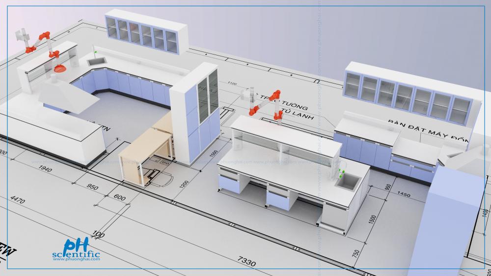 Bàn thí nghiệm được thiết kế dựa theo tiêu chuẩn phòng thí nghiệm ISO 17025, BS-3202-1991,…